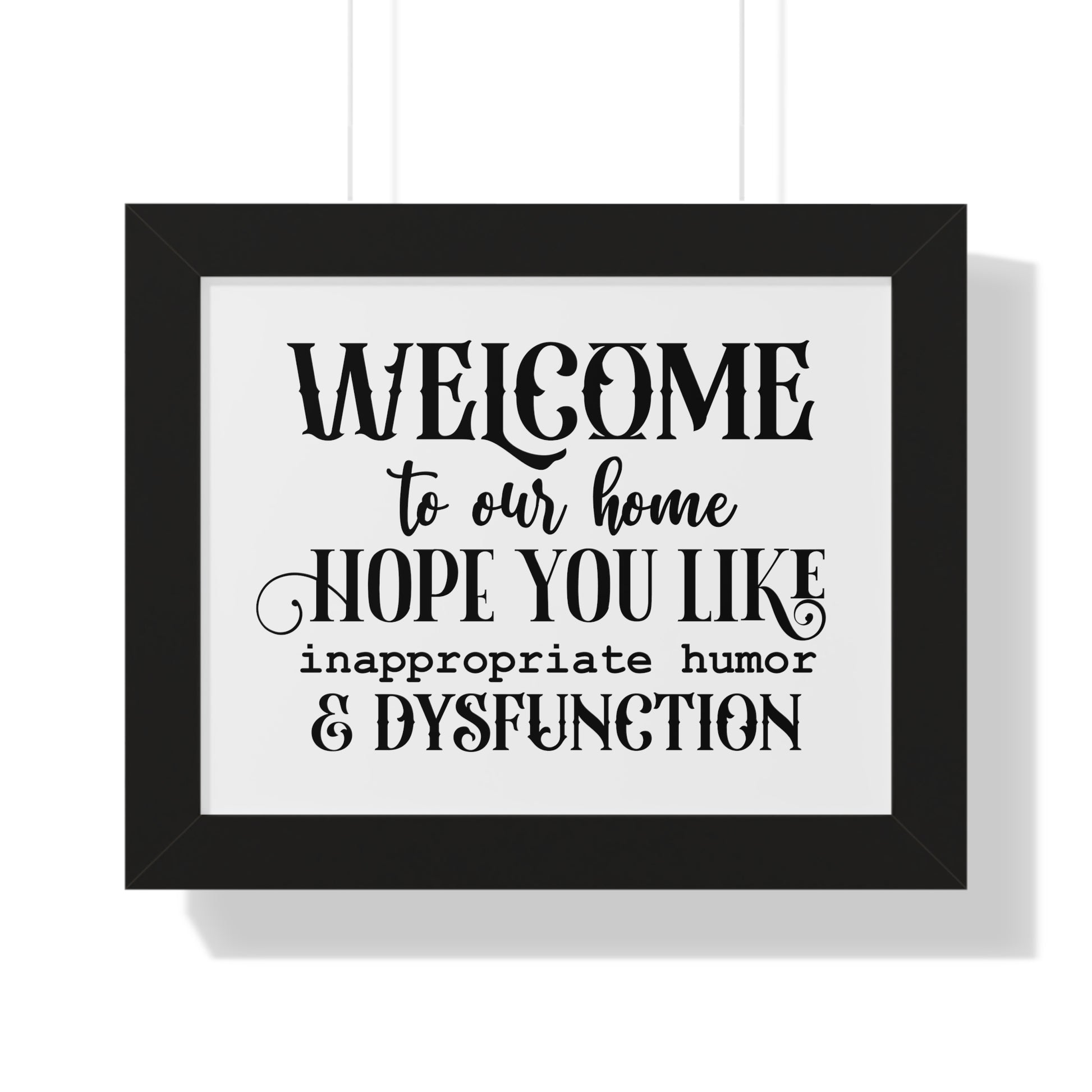 Framed, Welcome to our Home Hope You Like Inappropiate Humor & Dysfunction